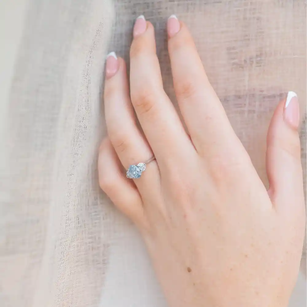 All Azure rings are crafted using Blue & White Laboratory Grown diamonds in this range for their brilliance, unique hues and shades, affordability and sustainability. It is important to note that no two stones are the same, so blue tones will vary from the stones used in images.  All our Laboratory Diamonds are certified with Independent Laboratory Grading Certificates.